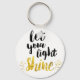 Modern Brush Calligraphy style with words, “Let your light Shine” (based on Matthew 5:16), in gold style effect. The word “shine” has light ray illustrations extending on either side.