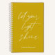 The notebook features a powerful "Let Your Light Shine" quote, rendered in white against a mustard yellow backdrop. This combination of colours symbolizes ambition and sophistication, setting the stage for academic excellence and personal growth.