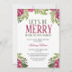 Christmas bridal shower invitation theme "Let's Be Merry Before She Gets Married" featuring watercolor red flowers and green leaves with golden accents, this design is perfect for a holiday bridal shower. The elegant typography adds a modern touch to this Christmas-themed bridal shower invitation. Customize the text to fit your event details and make it all yours.