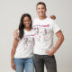 An edgy but romantic design for Valentine's day featuring two skeletons dancing surrounded by hearts.