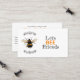 A personal play date calling card for kids! This cute bumble bee playdate business card features room for all of your contact information so your children can keep in touch with their friends over summer break or with new friends they meet! These mommy business cards feature an adorable hand drawn bumble bee design with the pun, Let's Bee Friends on the front side and plenty of room for your email, phone numbers, address, or any other information you'd like to include on the back side! Kids business cards are perfect to hand out to classmates at the end of the school year before summer break, or give them to teammates you want to stay in touch with after the sports season is over! Personalized and punny, a perfect way to stand out!