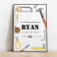 Let's build something FUN! Welcome your friends and loved ones for a fun builder-themed birthday blast for your little guy. This design features unique watercolor construction tools for your little handyman.