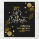 A modern, stylish and glamourous birthday wine label. This design features a vibrant typography "Let's Celebrate" with gold gradient bokeh on a black background. Personalize and add your party details. Make your milestone birthday an extraordinary event!