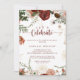 This let's celebrate gold rustic colourful floral party invitation is perfect for a simple engagement party, bachelorette party, retirement, graduation, wedding after party or any event or party. The design features hand-painted marsala, pink, blush, burgundy and gold flowers with green leaves arranged into beautiful wreaths.