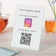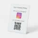 A convenient tabletop sign to display in your business that lets your customers connect with you on social media by scanning your QR code. This example uses Instagram as the social media type. Personalize the template with your company name and Instagram URL.