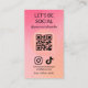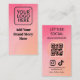 A modern vertical business card designed for social-media-focused brands. Features a scannable QR code, Instagram and TikTok icons, and space for your logo, handle, and contact info. Soft pink-to-peach gradient background with flowing organic shapes and a friendly call-to-action makes it perfect for small businesses, creators, and boutiques who want to connect instantly with customers online.