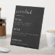 Modern minimalist bar list, wedding sign. Trendy typography design style template in white text on black background.