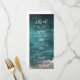 Romantic coastal themed let's eat wedding menu features beautiful moody abstract watercolor sparkling ocean wave and beach background, toped with stylish script and elegant font details, modern and simple, great for sand beach wedding, tropical destination wedding, coastal ocean themed wedding.