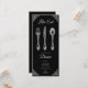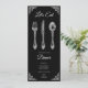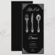 Elegant black dinner invitation featuring vintage spoon, fork, and knife design—perfect for sophisticated events and special occasions. Customize your invitation to set a stylish tone for your gathering!
