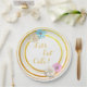 Adorable shabby chic style country floral flowers pink and gold girl's baby shower, birthday or wedding plates with pretty pink and blue flowers with pearls and diamonds.