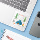 Fun camping stickers with a bear and his Raccoon eye masking sleeping in a pitched tent. You can customize the words with a click of a button.