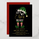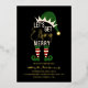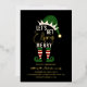 This cute and funny Christmas holiday party invitation is perfect for the festive season. It features an elf hat, legs, and the text, "Let's get elfing merry," in real gold foil typography and gold accents. The colour scheme includes green, white, black, red, and gold. It's hilarious, cool, and fun; the perfect design to send to friends and family.