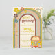Let's get groovy! A fun birthday party invite with bright colours, a chic arch, and retro-inspired typography.