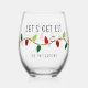Let's Get Lit Stemless Wine Glass with Christmas lights design.