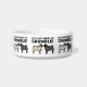 This is a heavy, durable bowl decorated with Tibbies of many colors, the perfect size for hungry/thirsty Tibs. The design is interesting and printing clear.