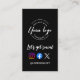 Keywords: Let's Get Social, QR Code, Website, Custom Logo, Business Card, Modern Handlettered Font, Social Media Icons, Facebook, Instagram, Twitter, Customizable, URL, White Logo, Branding, Black Background, Salon Business, Photo Studio, Restaurant, Cafe.