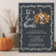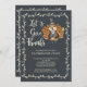 Thanksgiving feast Invitation featuring a sweet turkey with "let's give thanks" in a hand lettered font with a pretty leaf frame set on a popular black chalkboard background. Flip our Thanksgiving Invitation over to view a matching back for an extra special touch.