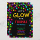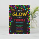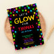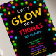 Celebrate your birthday party with our Neon Glow invitation. Ticket pass Features futuristic let's glow text on dark background. This trendy design is perfect for roller disco or glow party.