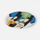 If it's a bowling birthday party or even just a bowling party in general, these colourful bowling theme paper plates are a perfect fit! Features a background with a striped bowling shirt of blue, green, and black, a bowling ball, three bowling pins, a gold trophy, and an area you can add text with his age and name!