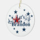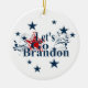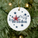 Star spangled patriotism with the latest message "Let's Go Brandon" blazing across this ornament will be a prize gift this year!