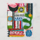 Let's go dancing is a colourful mixed media collage piece featuring tons of different shapes, stripes, circles, stars, flowers and more fun stuff.