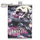 "Let's Go Ghouls" - A stylish, retro-inspired Halloween design featuring two glamourous witch characters in a vintage car. Set against a dramatic nighttime backdrop with a full moon, a haunted castle, and flying bats.Perfect for your witchy pals.