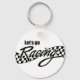 The phrase "Let's Go Racing" with a black and white chequered banner, that looks like it's blowing in the wind, behind it.