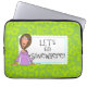Cute fun laptop sleeve to protect your device while on the go. Brightly covered with a sassy statement.