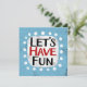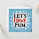 "Let's Have Fun" is a cute text design in light blue with black and red text, along with a white accent shape and white textured whimsical dots surrounding it.