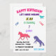 "Let's Horse Around" Birthday invitation with personalized name and age celebrating fun, games, cake & ice cream.