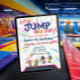 let's JUMP birthday party Invitation with children jumping on a trampoline.