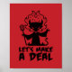 Cartoon illustration of a devil holding a pitchfork with his head engulfed in flames with Let's Make A Deal text. Tags: demon, devil, evil, fire, flame, monster, pitchfork, satan, deal, lets, cartoon, halloween, vector, devilish