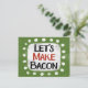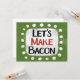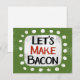 "Let's Make Bacon" is a cute text design with a white accent shape surrounded by white textured whimsical dots.