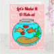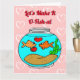 Funny cute Valentine's card with a play on words. Valentine's Day for goldfish in a bowl sharing valentines - will you be my valentine, let's make it o-fish-ial.
