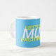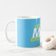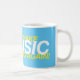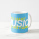 "Faisons de la musique excitante à nouveau!" expression inspirante sur une tasse à café avec un arrière - plan bleu ciel.