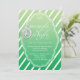 A pretty invitation that is perfect for a winter party. This invitation has a dark green to light green gradient background with white diagonal stripes. Centred is a large white frame for your text. At the top in white it says Let's Mingle and Jingle with a pretty ornament to the left. The rest of your invitation wording goes below in white. This invitation would be perfect for your business holiday party.