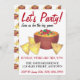 Invitations feature an original marker illustration of a nacho chips with queso cheese dip, and LET'S PARTY in a fun font. Ideal for celebrating the big football game.