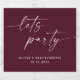 Burgundy plum modern script "Lets party" Sparkling Wine Label for bachelorette weekend, bridal shower, engagement or any other party.