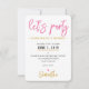LET'S PARTY cute pretty pink white hearts gold RSVP Card