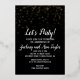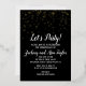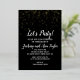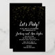 This Let's Party Gold Confetti on Black Anniversary Party gold foil invitation is perfect for a classy wedding anniversary celebration. The design features a black background with elegant real gold foil confetti and simple white calligraphy.