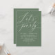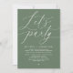 Mark the beginning of your forever with elegance using our modern romantic contemporary rustic sage green theme happily ever after wedding elopement celebration invitation card, "Let's Party". Perfect for couples extending their joyous occasion, this invitation exudes sophistication with a hint of playfulness, setting the stage for a memorable event. Adorned with a timeless modern script design theme, it adds a touch of refined charm to your festivities. Crafted by TeeshaDerrick, this invitation promises to beautifully capture your love story.