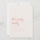 Get ready to celebrate with a delightful party invitation featuring the cheerful theme "Let's Party Hearty." The background is a warm beige, creating a welcoming and festive atmosphere. On the left side, the party details are presented clearly, ensuring guests have all the essential information. On the back, a simple pattern of pink watercolor hearts create a charming detail to the invitation. This invitation perfectly combines warmth and fun, setting the stage for a heart-filled, memorable celebration.