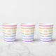 Let's Party in White Circle Pastel Rainbow Stripes Paper Cups
