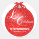 Save the date Christmas party sticker featuring a red lace covered Christmas ornament with customizable white party lettering. Let's celebrate! The elegant red lace motif of interlacing stars and flowers is reminiscent of the ancient craft of lace-making. You may also enjoy many of the other Christmas party products available in my store with this lovely, vintage lace christmas ornament designs. Anura Design Studio All Rights Reserved