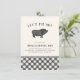 Hosting a BBQ or pig roast housewarming party this summer? Invite guests to "pig out" with you with our whimsical and cute party invitations featuring a vintage style hog illustration and "let's pig out" arched across the top in black lettering. Add your housewarming party details beneath using the template fields provided. A plaid bottom border adds a rustic finishing touch.