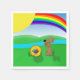 Beautiful day...sunshine and a rainbow over the rolling hills and river with an adorable puppy waiting to play ball. This design is perfect for a children's room décor, party invitations and more.