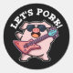 Let's Pork Funny Rock And Roll Pig Pun Dark BG Classic Round Sticker