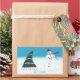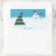 Fun painting of a Christmas tree and snowman dancing/rocking in the snow, is printed on custom stickers. The text says, Let's rock, and it can be easily customized on the template.