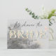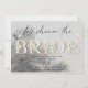 Let's shower the bride! Floral Invitation featuring an elegant written BRIDE with a floral pattern surrounding it.
