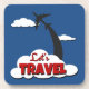 Retro style "Let's travel" illustration with airplane decoration on the cloudy sky